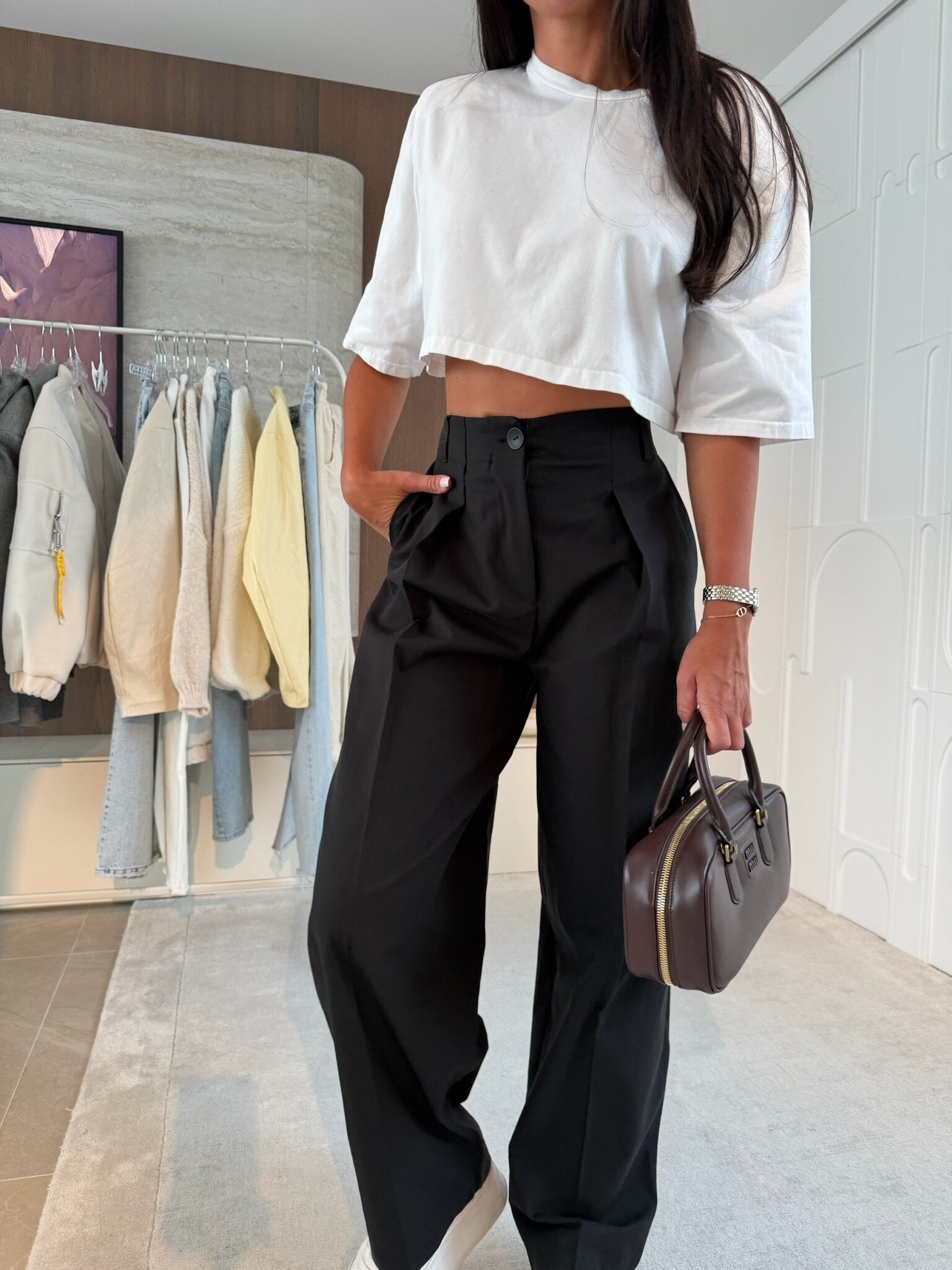 These pleated trousers, available in both black and brown, offer a classic silhouette that enhances comfort and style. The pleating provides additional room for movement, making them suitable for both casual and formal settings. Crafted from quality materials, these trousers ensure durability and a refined appearance.