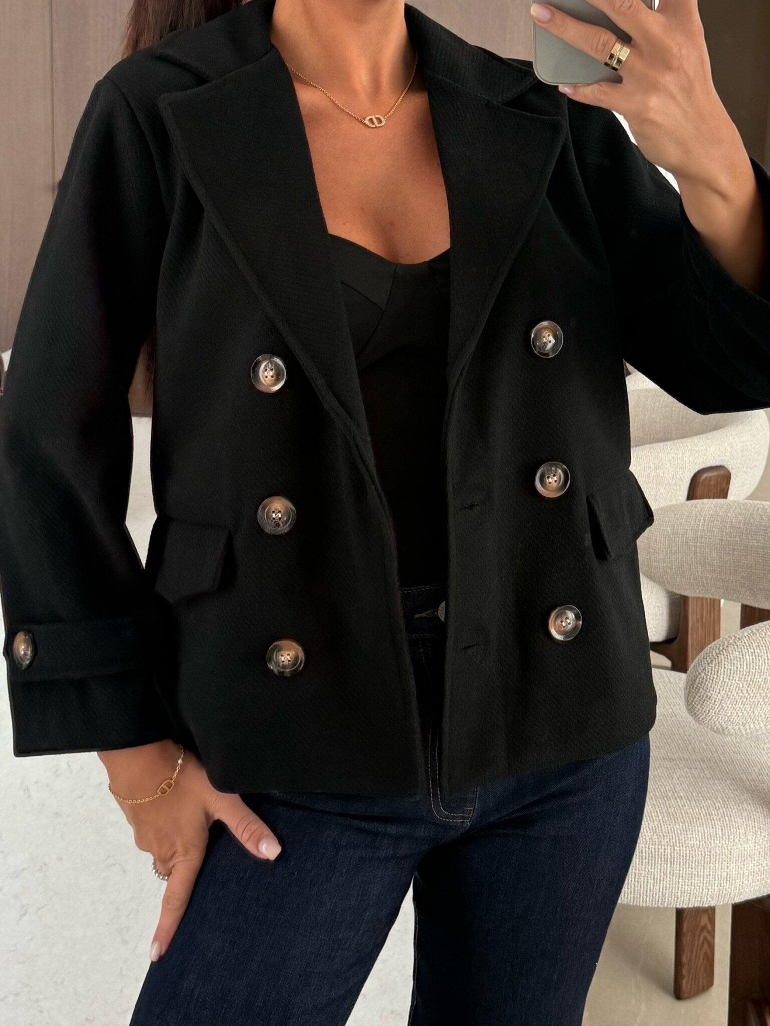 This short wool coat is made from a premium wool blend, providing both warmth and style. Its shorter length is perfect for transitional weather, and the wool fabric offers a sophisticated and timeless look. Stay comfortable and on trend with this versatile and high-quality coat.